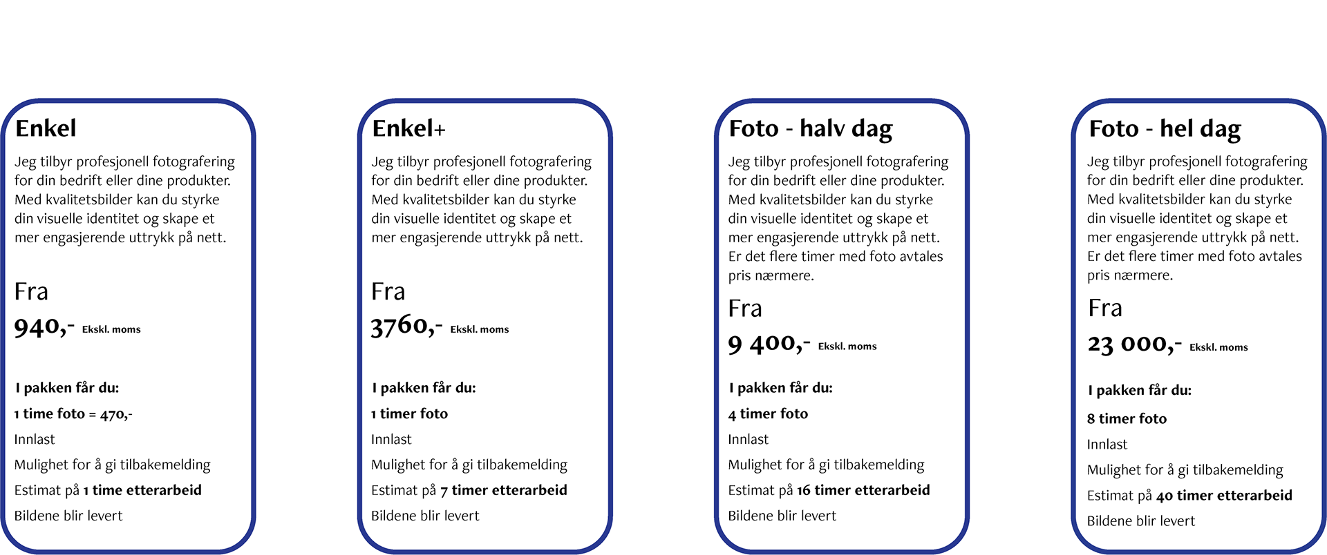 For hver opptaksdag ligger prisen på 4 000 kroner, som dekker grunnleggende planlegging, gjennomføring, etterarbeid og logistikk.